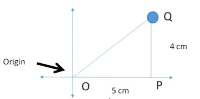 We can say that the position of the object is OP form the origin O in direction of x-axis and PQ from origin O in direction of y-axis. In term of co-ordinate system we say it as (OP, PQ) or (5,4) in term of actual value of axis.